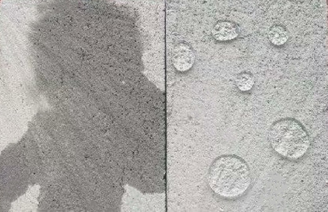 左邊的水泥沒(méi)有用防水劑,右邊的用了防水劑。